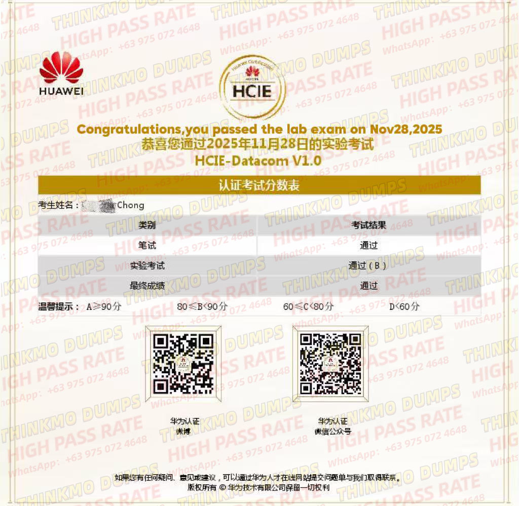 ThinkMo candidates achieved HCIE triple passes in Storage, WLAN & Datacom exams in December! Benefit from our stable, accurate HCIE question banks and professional ICT training to ace your Huawei HCIE certification....